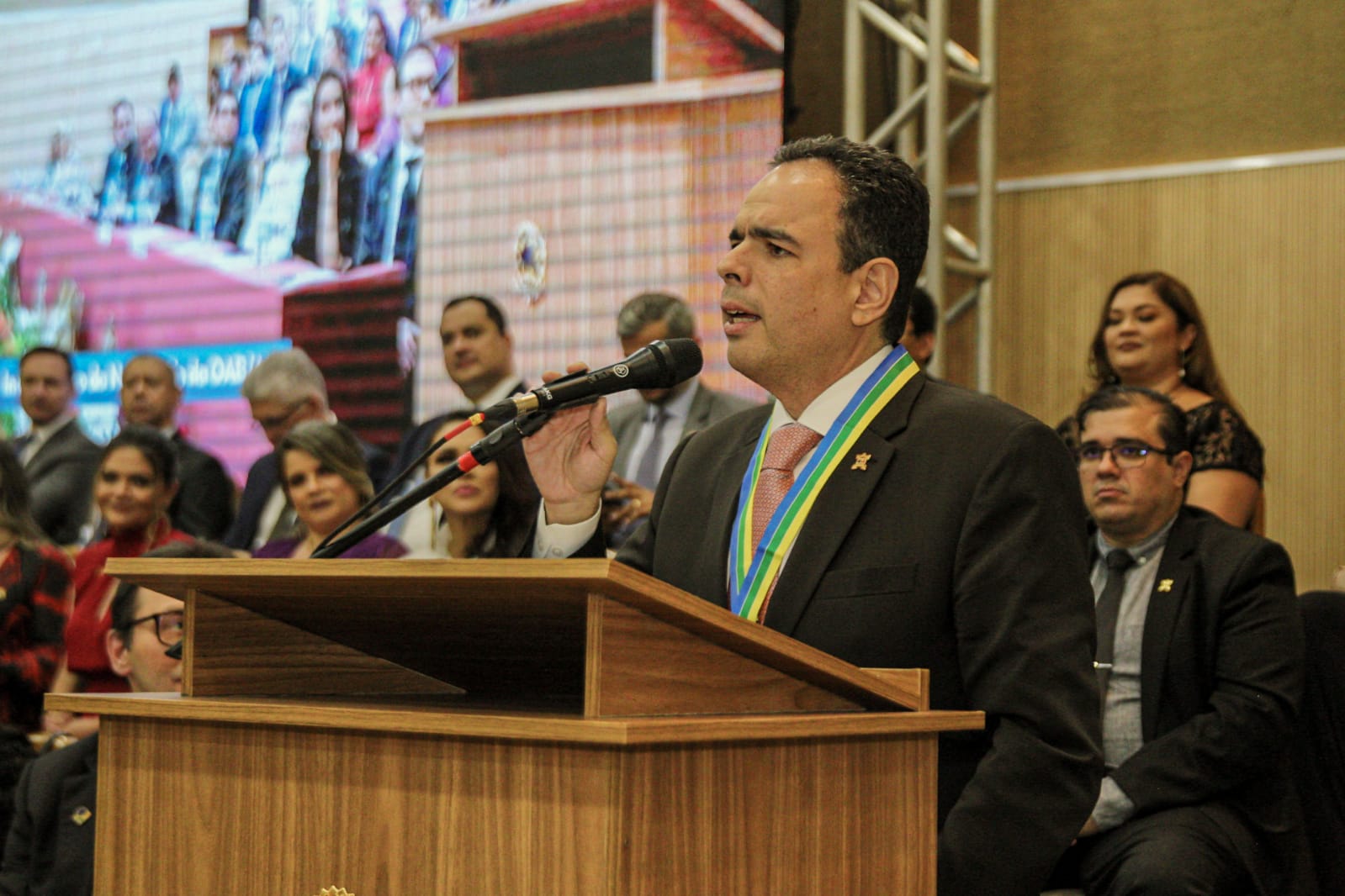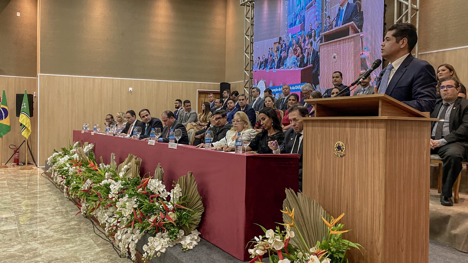 A mesa de honra foi composta pelo Presidente do Conselho Federal da OAB, Beto Simonetti; Presidente da OAB-AP, Auriney Brito; Diretor-Tesoureiro do CFOAB, Leonardo Campos; Conselheiro Federal da OAB/AP e Presidente do FIDA, Felipe Sarmento; do Desembargador Carlos Tork, Presidente em exercício do Tribunal de Justiça do Estado do Amapá e Membro Honorário Vitalício da OAB-AP; Procuradora-Geral de Justiça, Ivana Cei; Desembargador e Corregedor do TRE-AP, João Guilherme Lages; e a Desembargadora Sulamir Monassa, Representando a Presidência do Tribunal Regional do Trabalho da 8ª. Região e Membro Honorário Vitalício da OAB-AP.